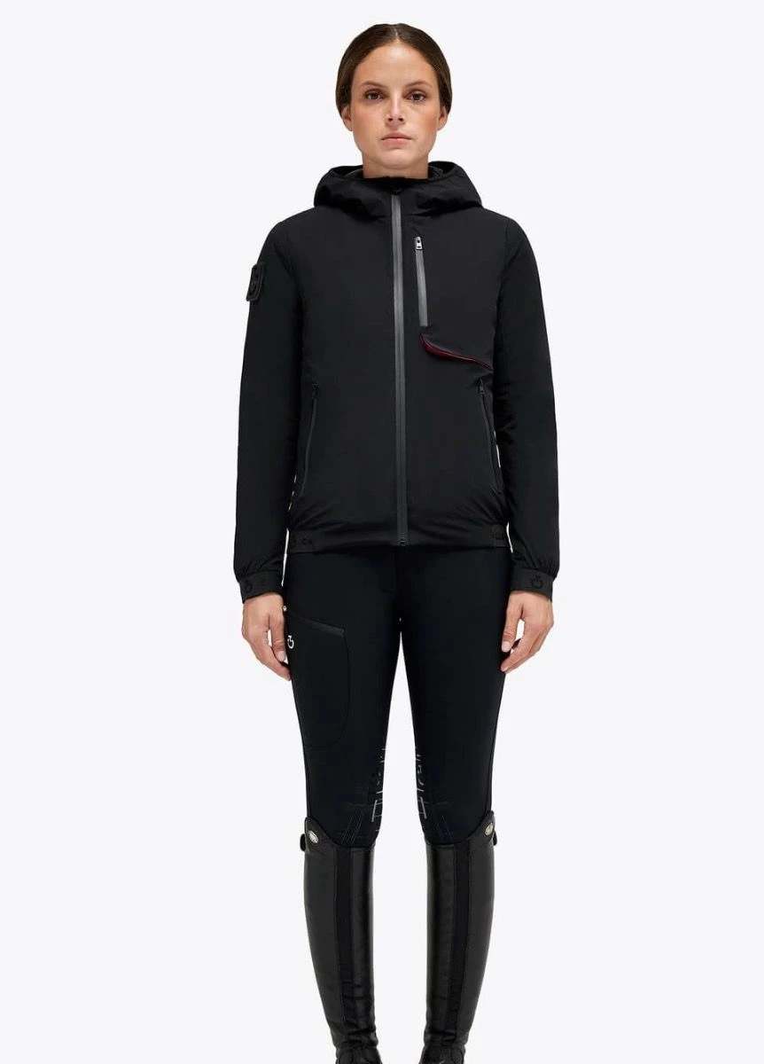 The Cavalleria Toscana women’s zip bomber jacket is the perfect accessory for outdoor activities. Made with high quality materials, this bomber jacket is resistant and durable thanks also to the nylon. Its elegant black finish makes it suitable for use on any occasion.