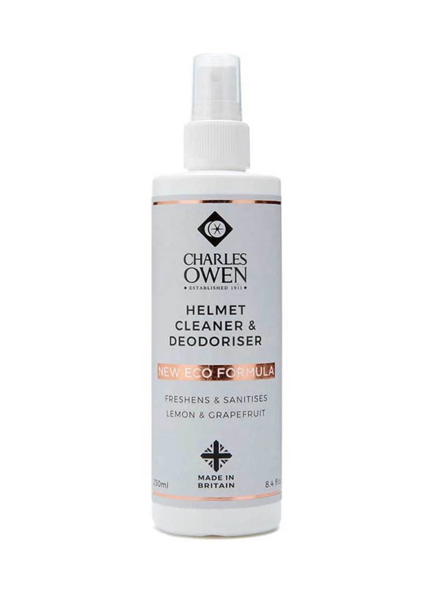 The new eco-friendly formula combines Charles Owen’s helmet cleaner and deodoriser into one pump-action spray bottle. This specially formulated spray breaks up dirt and grease. It effectively removes sweat, sunscreen, makeup and dust to ensure your helmet and headband remain clean and fresh over the course of its lifetime. Leaves a refreshing lemon & grapefruit fragrance.