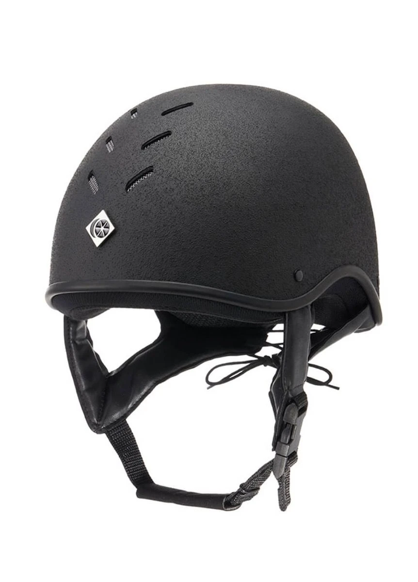 The JS1 Pro now features the iconic Charles Owen front badge! The JS1 Pro jockey skull is lightweight, deep-fitting and features an impact-resistant ABS outer shell with ten ventilation slots. The upgraded leather look harness with reinforced nylon webbing and suede padding under the chin provides greater rider security and comfort.