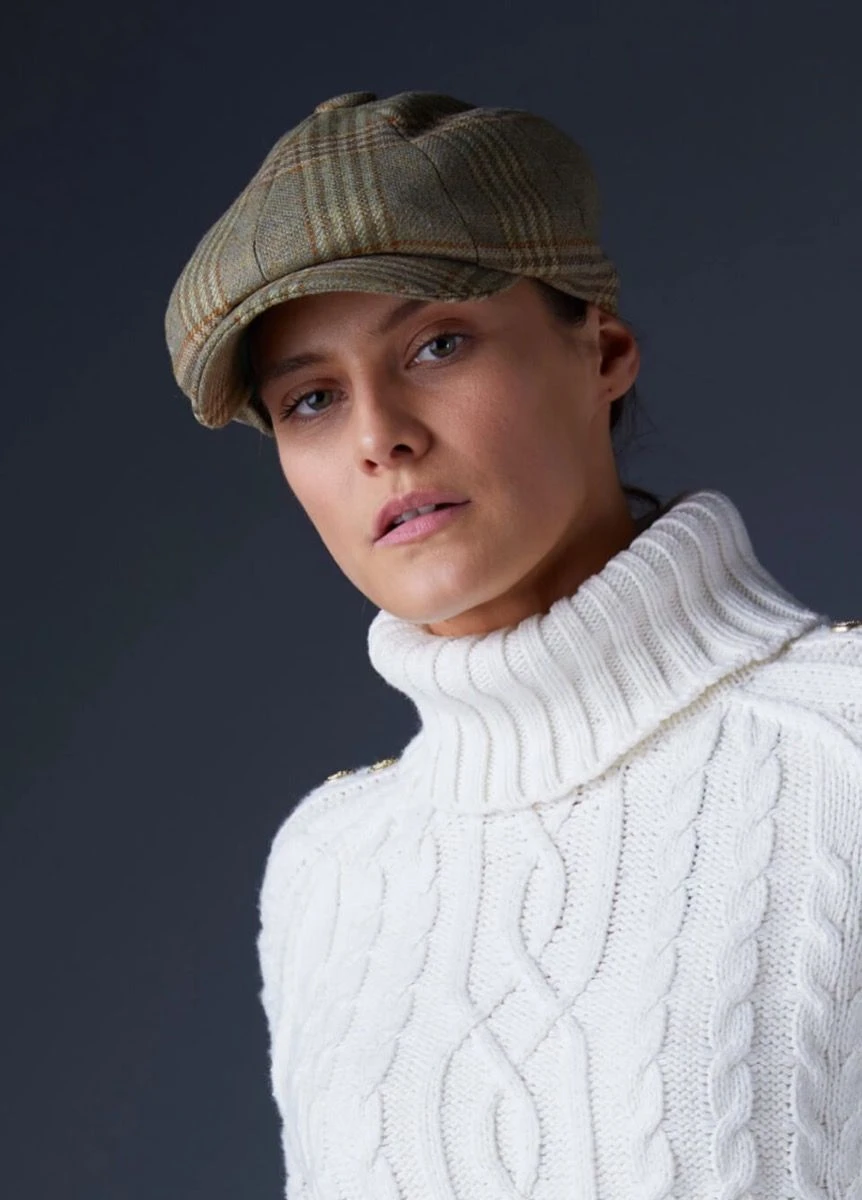Handmade from the finest Scottish tweeds, this stylish tweed cap is this seasons must have. Its generous bucket and curved peak cuts a glamorous look bringing a touch of casual chic to any outfit.