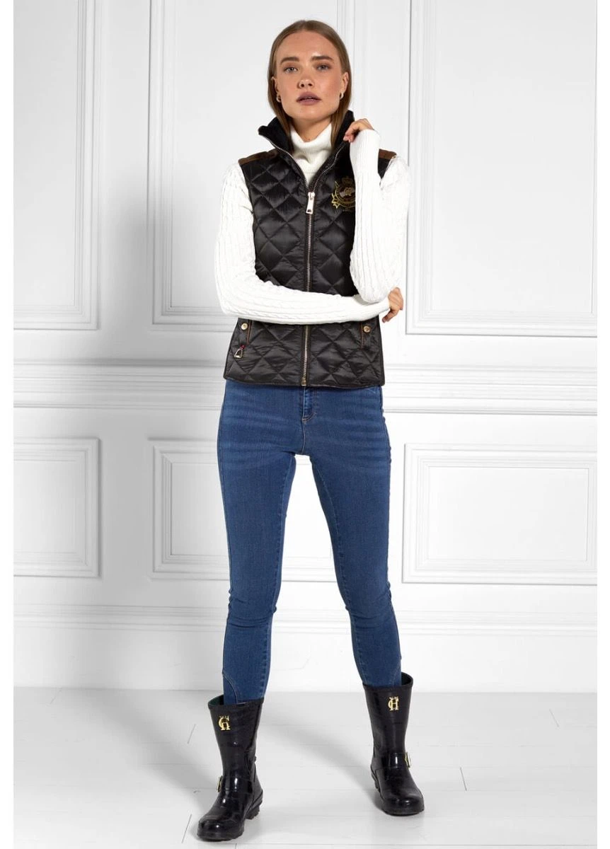 The Diamond Quilt Riding Gilet is designed with stretch pin tuck sides allowing for a close cut silhouette, perfect whilst riding. The pin-tuck seams provide gentle elasticity allowing for a wide range of sizes that provide comfort without compromising on style. This gilet is perfect for wearing on or off your horse and can be styled multiple ways.