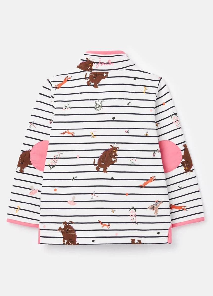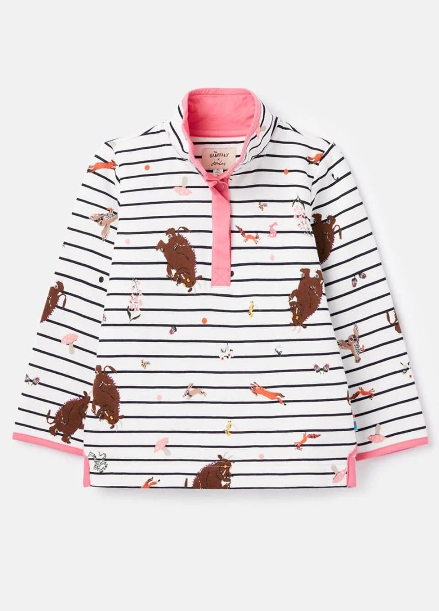 This is the much-loved Saunton sweatshirt you already know, just with a print that any little fan of The Gruffalo will be desperate to wear! It’s part of our official collection with The Gruffalo and is adorned in a print that features some of the story’s most loveable characters that your little one will love pointing out. It’s crafted from soft jersey, has a 1/4 popper placket, funnel neck for snuggling into and colour pop binding to the neck, cuffs and placket. Flip it round and you’ll find the fun addition of elbow patches for a traditional touch and Joules scripting to the back of the neck.