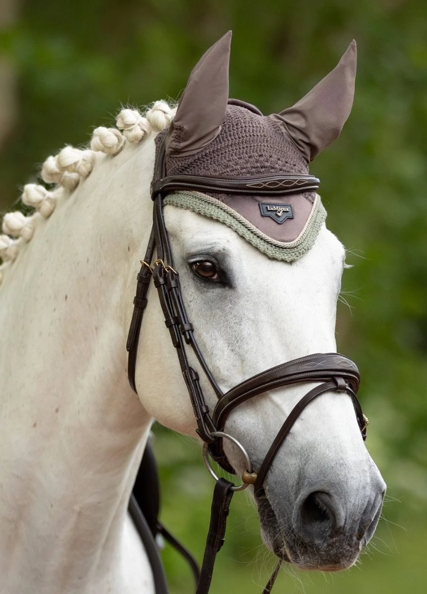 Sporting the signature LeMieux Loire embossed metal motif, these luxurious fly hoods with Loire satin are a stylish addition to your coordinated LeMieux collection. Loire Fly Hoods defend your horse’s face and ears from flies, dust and distractions. They’re beautifully made from hand-knitted crochet with twisted braid edging, luxurious satin fabric front pieces and soft stretch ears.