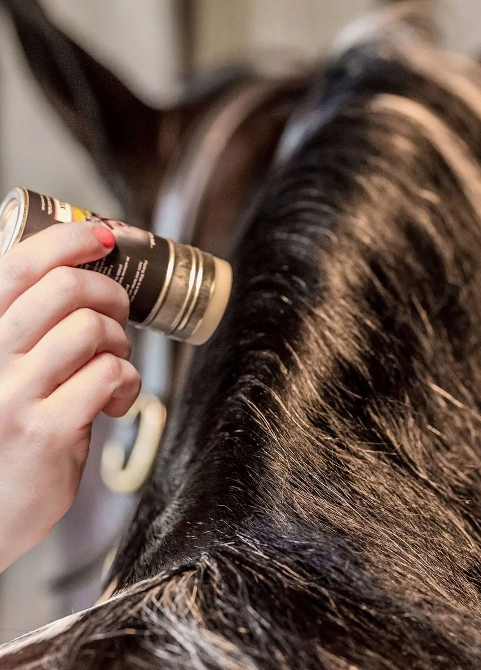 Spray the mane sparingly with Smart Grooming Perfect Plaits Spray, comb through and divide as required.